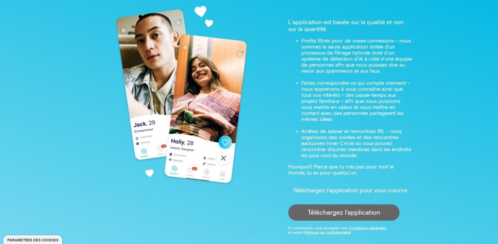 Inner Circle peut sembler parfaite à première vue. Cependant, sa procédure d’approbation des comptes peut être brutale et vous n’avez pas d’autre choix que de vous connecter à votre compte de réseaux sociaux. En outre, votre compte sera inutile si vous ne payez pas un abonnement. Mais la qualité des célibataires est impressionnante et vous n’avez pas à faire face à des escrocs. En outre, les utilisateurs payants ont accès à une tonne de fonctionnalités. InnerCircle est conçu pour les jeunes célibataires qui se sont établis. Ainsi, il n’est pas basé sur une personnalité comme d’autres sites de rencontre.